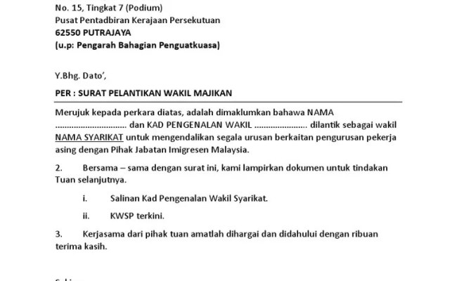 Perwakilan kuasa memohon lesen bagi pihak syarikat/ perniagaan. Contoh surat wakil kuasa page 1 line 17qq com. 3.dengan itu,saya mengaku akan bertanggungjawab di atas tindakan memberi kebenaran ini.
